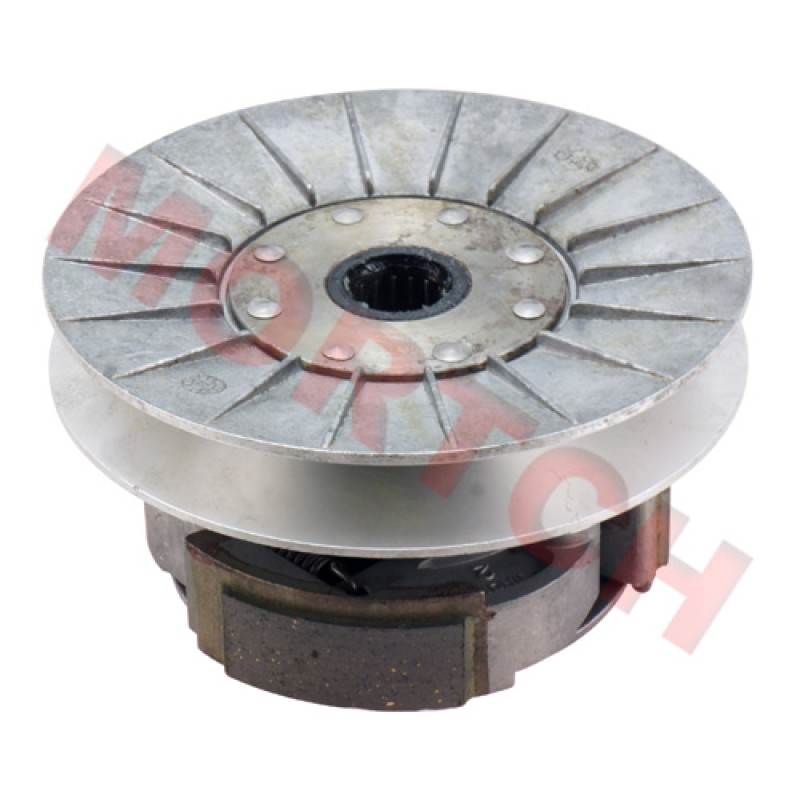 The rear pulley kit comes with fixed and movable halves, clutch and its respective clutch bell (standard quality) for the 4 stroke liquid cooled Yamaha YP250 LH170MN Linhai VOG 250-300cc engine.