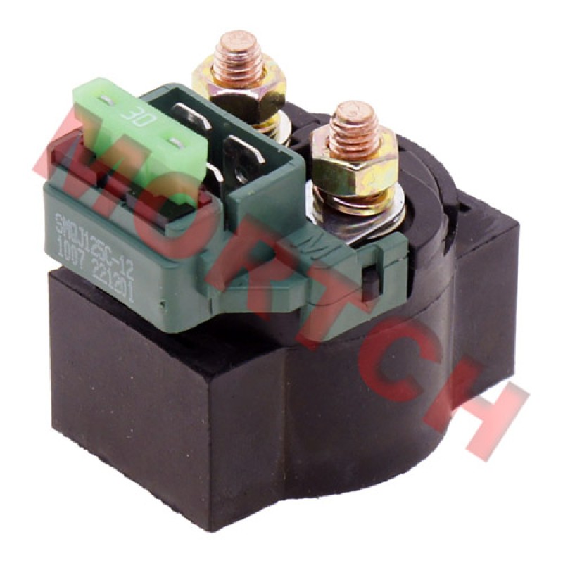 This Starter Relay / Starter Solenoid applies to (and is not limited to) 250cc to 600cc electric start engines. This relay operates in the same way as other non-fuse based relays and using a 20A in-line fuse is one of the best ways to provide additional circuit protection. Bolt studs are 2cm apart center to center. This Starter Relay is most commonly used for Chironex Spartan 500cc and Chironex Spartan 600cc UTVs (4x4/2x4 and similar variations), Xinyang 500cc - 600cc ATVs and UTVs (4x4/2x4 and similar variations) as well as a range of CF Moto machines such as the CF500 ATV.