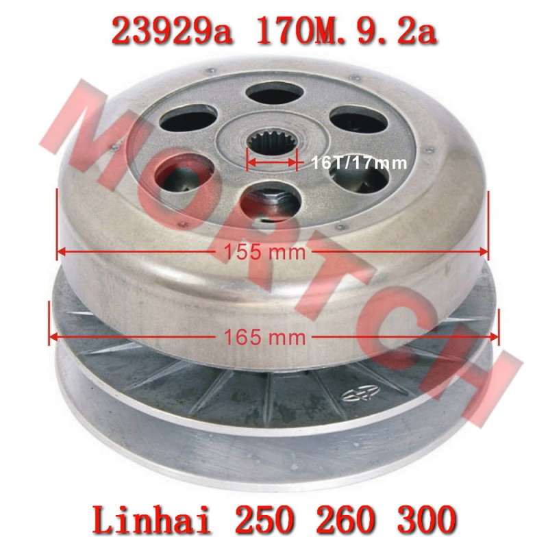 This is a completely assembled Clutch, Pulley and Bell Housing for Yamaha YP250 LH173MN Linhai VOG 250-300cc engine. This assembly includes the clutch, clutch springs, torque spring, pulley sheaves and bell housing. This is ready to install. This clutch fits Linhai Aeolus, Roketa, JCL, VOG, Diamo Turista and many others.