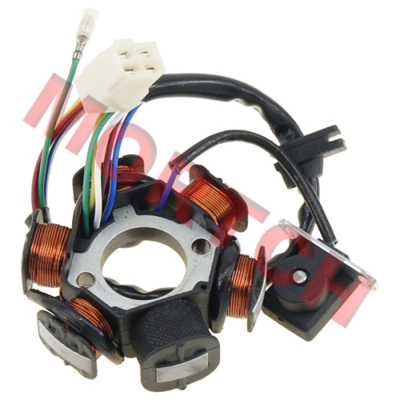C100 6 Pole Stator Comp for Moped, Cub, Dirty Bike and ATV, fits the engines of 139FMB, 147FMD, 147FMF, 150FMG, etc.