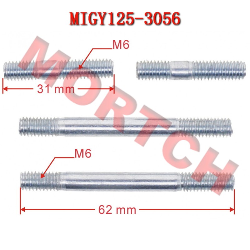 This is a replacement exhaust Stud Bolt (M6 x 1.0 x 32mm) and Intake Manifold Retaining Stud Bolts (M6 x 1.0 x 63mm) is for the 4 stroke, GY6 50cc 125cc and 150cc engine. These directly replace the stock bolts and it is used on a wide variety of scooters and ATV brands and models that have Chinese built 50cc GY6 152QMI/1P57QMJ engines.