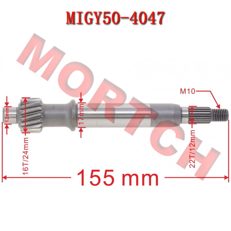 19 spline Type 4 final drive shaft for GY6 engines. This Type 4 final drive shaft is used on a wide ..