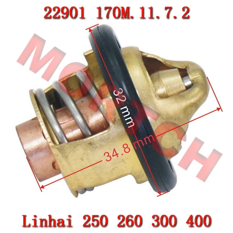 This thermostat is commonly used on the 4 stroke liquid cooled Yamaha YP250 LH170MN Linhai VOG 250-300cc engine.